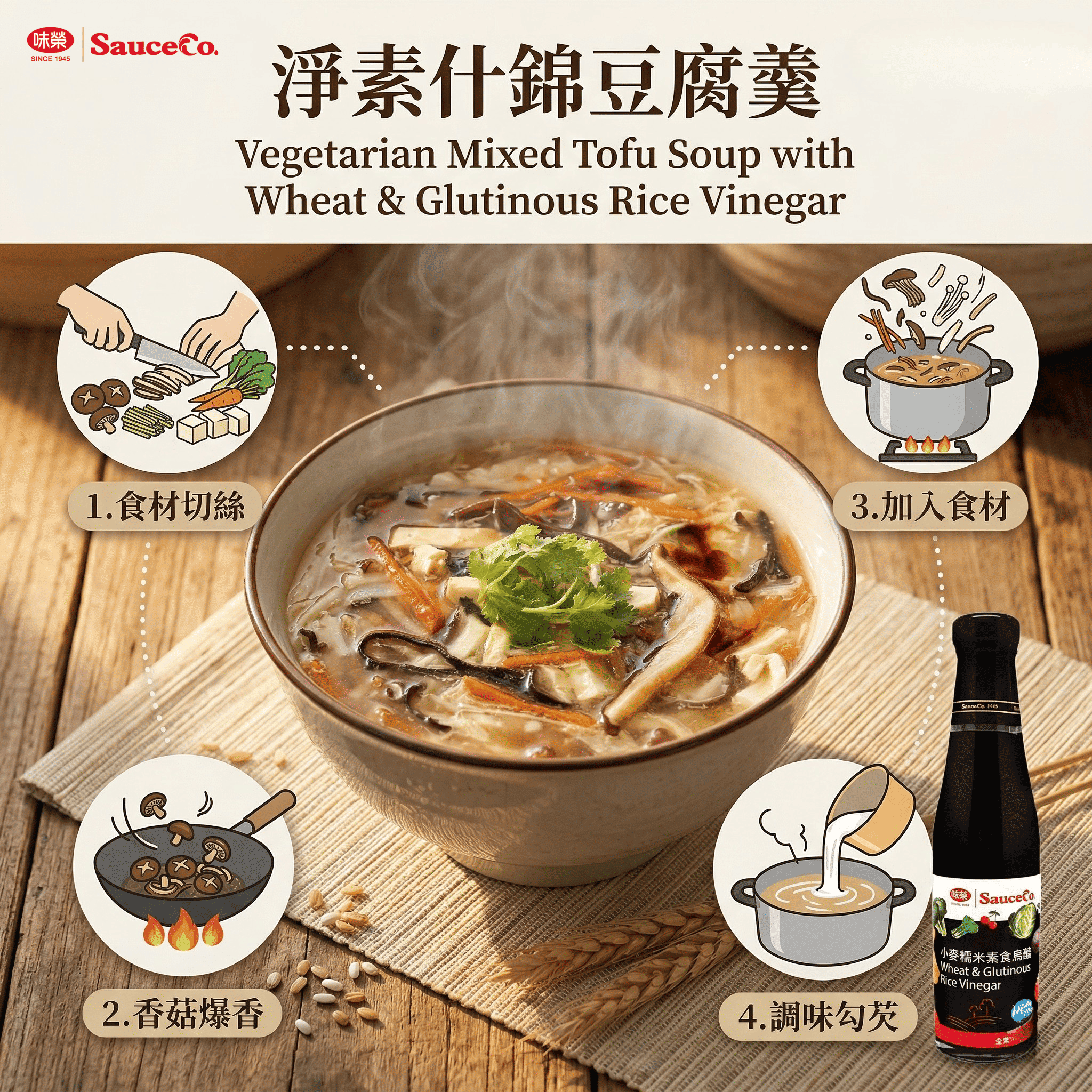 5.淋上香油、小麥糯米素食烏醋後起鍋。