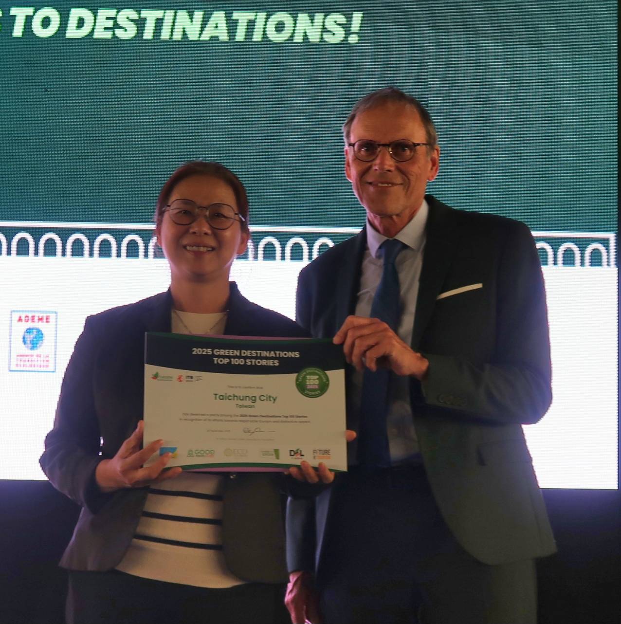 綠色旅遊目的地基金會(Green Destinations Foundation, GD)於9月28日至30日在法國舉辦「2025全球綠色目的地年會」,台中市以「環山獵人登山步道」與「台灣味噌釀造文化館」雙雙獲獎,展現城市推動永續旅遊的亮眼成果。
