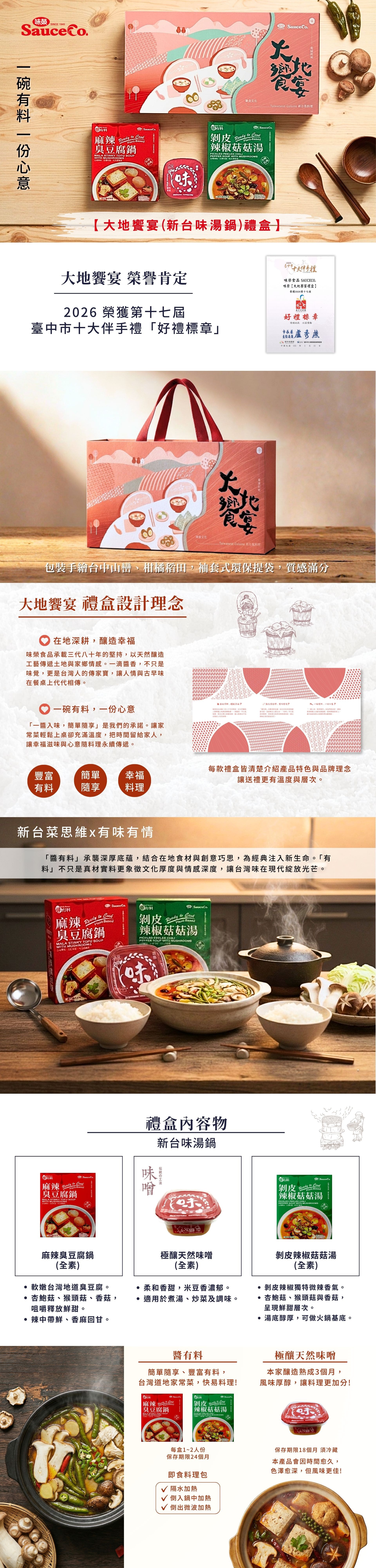 .台灣栽種杏鮑菇、猴頭菇與香菇為基底,呈現鮮甜層次。